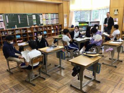6年生は、今まで学習してきたことを活用して、オリジナルカレーについて紹介する活動に取り組んでいました。カレーの名前を考え、どんな食材が入っているか、その食材の産地はどこかなど、魅力を感じてもらえるようグループで力を合わせながらまとめていました。