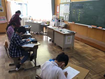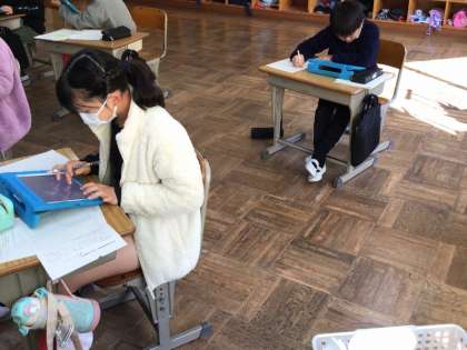 4年生は、「木」について学習をしています。人工林のスギ・ヒノキや自然林のクヌギ・アベマキ・ナラ・カシ・シイ・クスノキについて、それぞれの木はどんな特徴があるのか、どんな活用方法があるかなどを調べています。