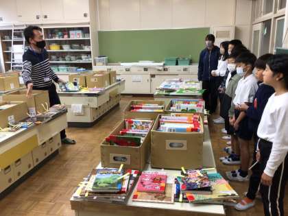 4年生は初めに担当の方から説明を聞きすぐにたくさんの本に付箋を貼ることができました。