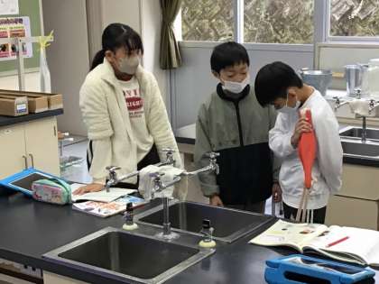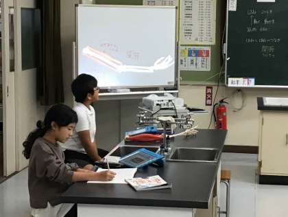 4年生は、体のつくりについて学習をしています。腕の骨と筋肉の模型を使って、腕の関節や筋肉の動き方を調べました、模型を使うと、いろいろな動きが再現できるので、より分かりやすいです。調べて分かったことは、ホワイトボードに映像を映して発表し、全員で共有しました。