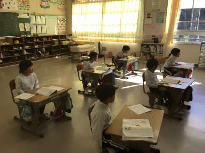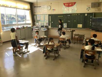 1年生は、国語で「おとうとねずみチロ」の物語を読んでいます。「この言葉を言ったときの気持ちは?」と、本文を読んで考えていました。どんな様子の声だったのかも想像し、「信じたい、という気持ち。大きな声で言った」という言葉は、実際に大きな声で言って、登場人物になりきっていました。