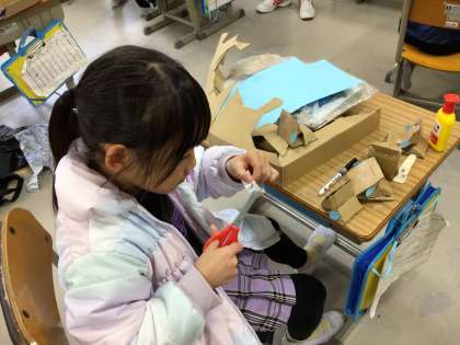 それぞれの選んだおもちゃをきれいに飾り付けしたり、動きを確かめたりしながら試行錯誤しています。みんなが喜ぶ顔が楽しみですね。