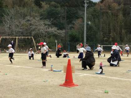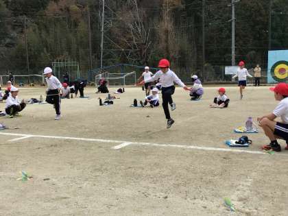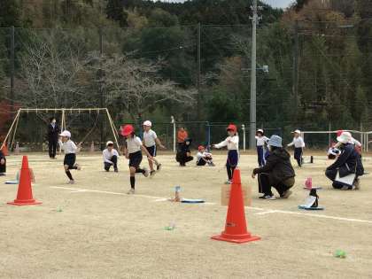 元気よくかけ足跳びをしました。引っかかってもすぐに続けます。