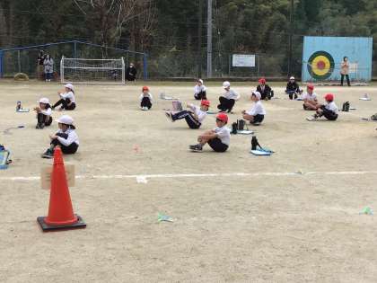 高学年がチャレンジしているときは、低学年が、低学年がチャレンジしているときは高学年が、お互いを応援します。いいよ。その調子。大丈夫大丈夫。がんばれーいろんな声で励まします。