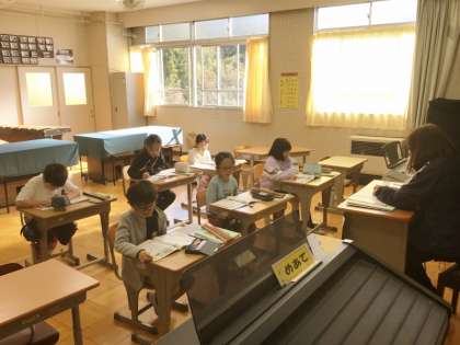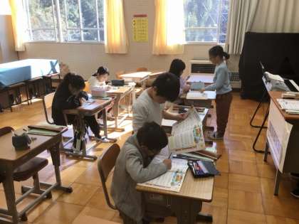 3年生は、リコーダーで演奏するために、楽譜に音階を書いていました。音階が正しくかけているか友達と確認したり、教えてもらったりしながらの活動です。楽譜のポイントといっしょに、全員でも確認していました。音階唱もして、リコーダーで演奏するための準備万端です。