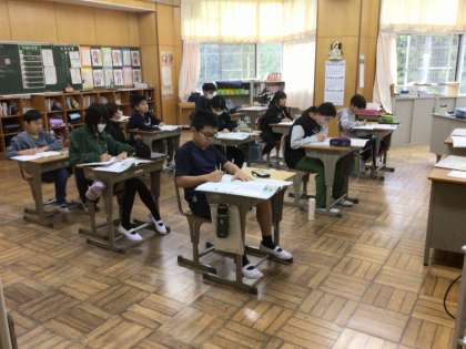 6年生は、道徳で「その思いを受けついで」というお話から、命について考えていました。主人公は、重い病気で入院しているおじいちゃんの看病を一生懸命にしています。おじいちゃんが亡くなった後、枕の下から、しわくちゃになった1か月後の主人公の誕生日祝いののし袋を見つけて…、というお話です。