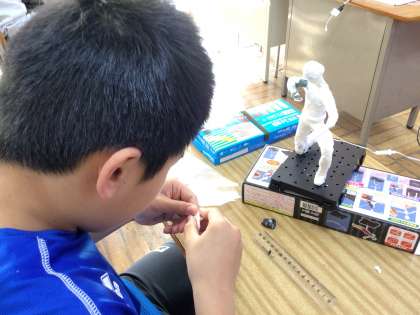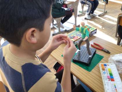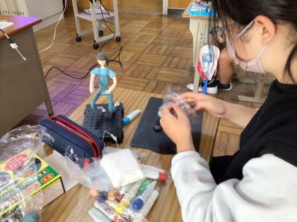 10年後、20年後、みんなはどんなことをしているのかな?未来の自分の姿を想像して制作しています。針金の芯を巧みに動かしたり、体形のバランスを意識して紙粘土の量を調整したりとこだわって制作しています。完成が楽しみです🎵