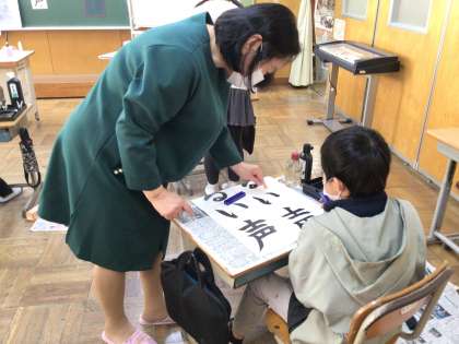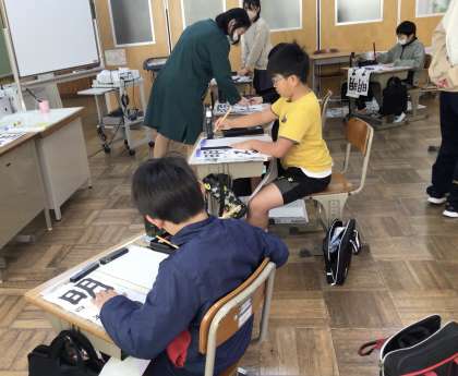 4年生の教室に今年2回目の書写指導講師、鈴木先生が来てくださいました。