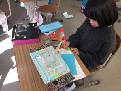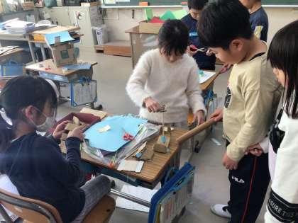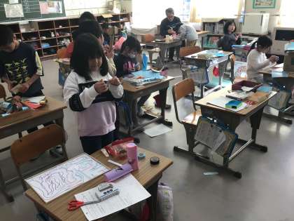 「結構苦労したんだよ」「こうやればうまくできるよ」「サツマイモみたいだよ」とあちこちで実演しながら見せてくれます。1年生が喜ぶ顔が目に浮かびます。お兄さん、お姉さんになってみんなを楽しませてあげてね。