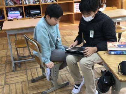 今日は、思考ツールのピラミッドを使いました。いくつものオススメポイントから最も大切なカードを選ぶ作業を通して思考を整理していきます。お互いの様子をビデオに撮ってアドバイスをする姿も真剣でした。いいね!