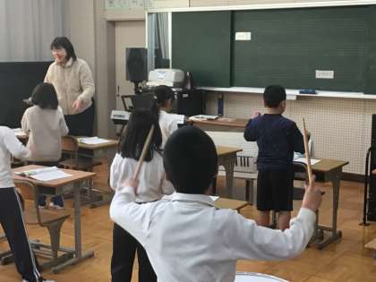1/12 2年音楽 歌って、リズムを打って。