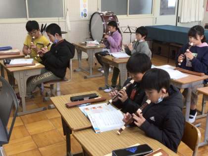 1/12 4年音楽 リコーダーで演奏しよう