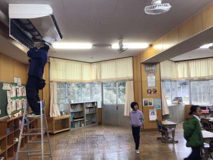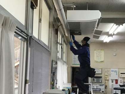 今日は、各教室にあるエアコンのフィルターの清掃を業者の方が来てくださいました。