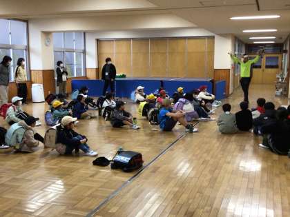大谷選手にふんした先生が現れると、みんなは笑顔いっぱい。