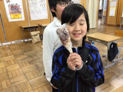 5年生は、自分たちが苗を植え、稲を買ったお米で五平餅をつくりました。