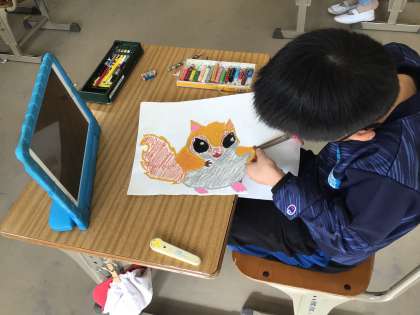 自由な画材を使って自分なりのムササビを作る子供たちでした。