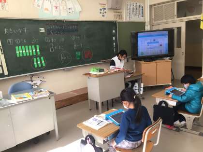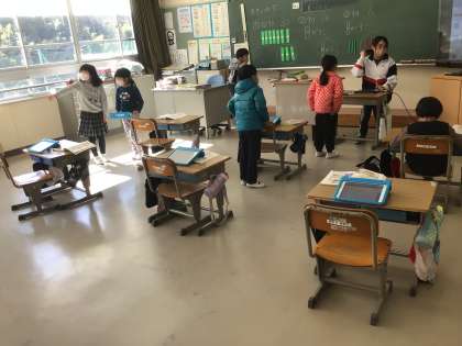 「身近に100と言う数があるかな」という先生の問いかけで、教室中を探し始めた子供たちでした。