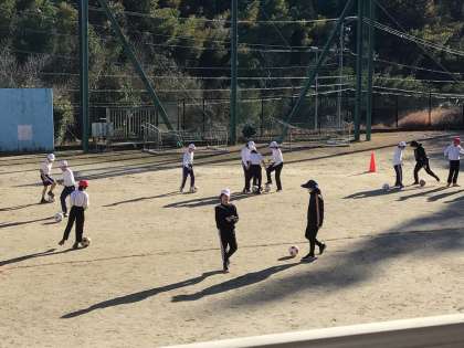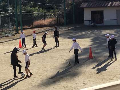 5年生と6年生は運動場で元気にサッカーをしていました。