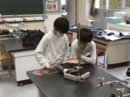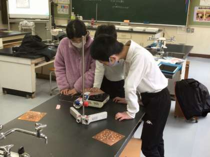 4年生は、理科で「もののとけ方」の学習をしています。ろうをぬった銅板を熱して、どのようにろうが溶けていくかを、実験していました。ろうが溶けるということは、熱が伝わっているということ。目に見えない熱の伝わり方がはっきりと見えるようになっており、驚きの声が聞こえました。