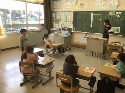 1年生は、「かぼちゃのつる」というお話で道徳の授業をしていました。周りの人の言うことを聞かず、伸びたい方へどんどん伸びていくかぼちゃのお話です。かぼちゃにとっては、つるを伸ばすのは大事なこと。じゃあ、大事なことをするのにかぼちゃはどうしたらよかったのかな。みんなで話し合っていました。