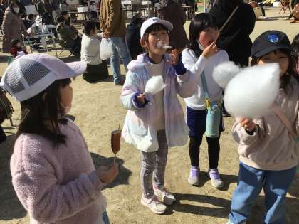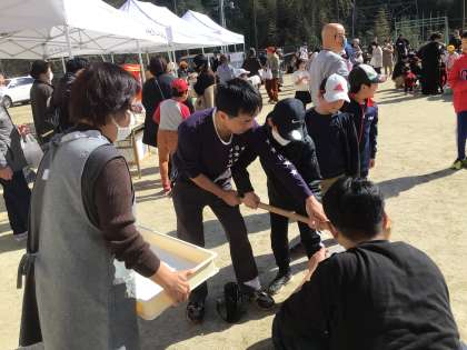 もちつき、焼きそばやフライドポテト、綿菓子は子供たちに大人気で、あちこちに笑顔が広がりました。ぽかぽか陽気の中、地域の皆さんとなごやかな時間を過ごすことができたようです。