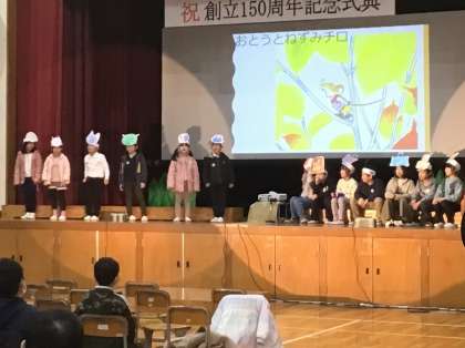 1年生も、2年生も、登場人物になりきって、国語で学習した物語を紹介しました。その名も「なりきり対決」です。1年生は「おとうとねずみのチロ」、2年生は「ニャーゴ」を紹介し、元気いっぱいなりきっていました。