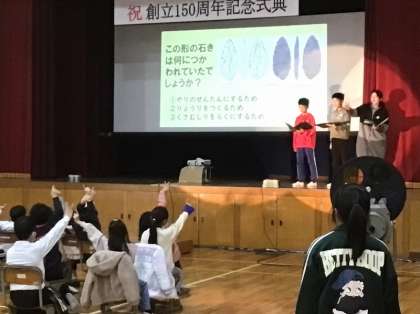 6年生は、「幸海歴史研究所」の所員となって、ふるさとの歴史について発表しました。スタートは12000年前の縄文時代からです。