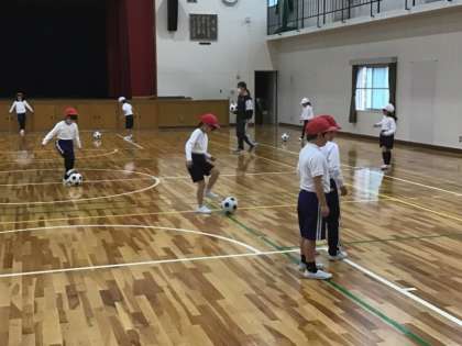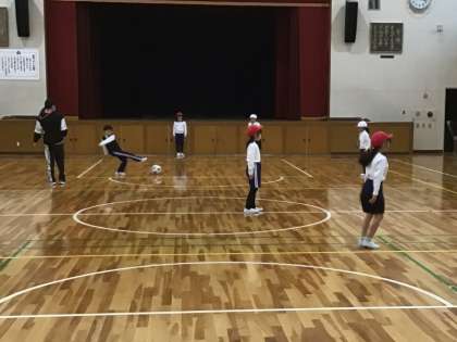 2/21 1、2年体育 ボールをしっかり蹴ろう