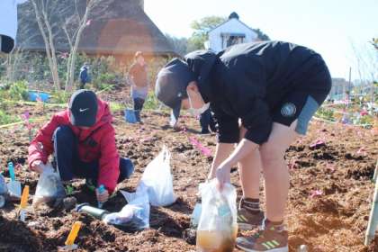 4年生の頃から、毎日水やりをして育ててきたどんぐりの苗を、オープン前の豊田市博物館へ、校長先生と植樹してきました。2年半もの間、みんなで水やりをして大切に育ててきたので、思い入れも大きいですね。
