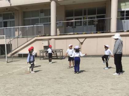 1,2年生は、体育で縄跳びとサッカー(ボール蹴り遊び)に取り組んでいました。縄跳びは練習を続けていたので、ぐっと上達したのがわかります。