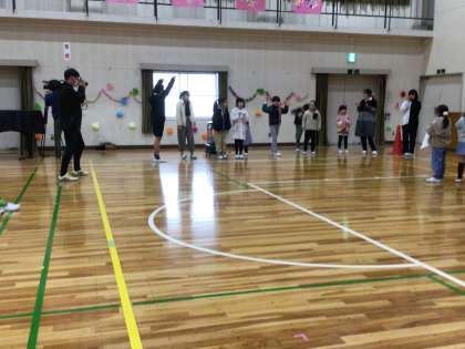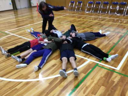 チームワークが試される大根抜きゲーム。全員くっついて離れませんでしたね。