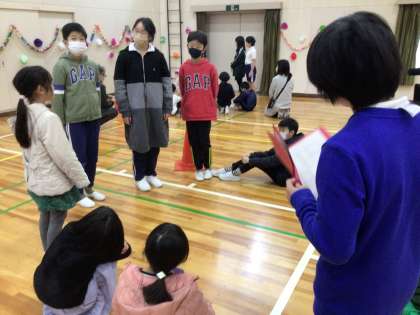 これまでたて割り班でお世話になった6年生。それぞれのグループで顔を見合わせながら感謝の気持ちを伝えました。