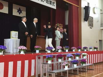 令和6年度のスタートです。新任式で新しく幸海小学校に着任した先生たちを紹介しました。子供たちは、どんな先生だろうと興味津々。あいさつをしっかりと聞いていました。