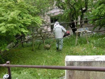 幸海ふれあいパークの草がぐんぐん伸びています。今日は、朝から校内整備員さんが草刈りをしてくださっています。ありがとうございます。