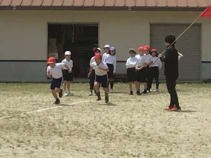 5月28日に、体力テストを行います。本番でよい記録が出せるよう、どの学年も少しずつ練習をしています。どうしたら速く走れるか教えてもらう「走り方教室」もあるため、繰り返し50mを全力で走り、練習をしていました。