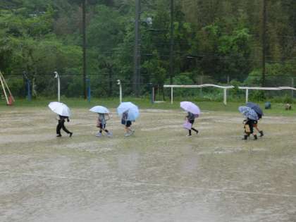 ゴールデンウィークが明けました。子どもたちはどのように過ごしたでしょうか。あいにくの雨天気ですが元気に登校してきました。欠席者もなくとてもうれしく思います。保護者の皆様へ感謝申し上げます。登校した後は全校朝会を行いました。写真は、登校の様子と全校朝会後の全校写真です。