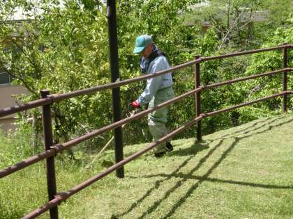 校内整備員さんによる草刈り作業が順調に進んでいます。少しずつきれいになってきました。木陰がとても気持ちがよいですよ。