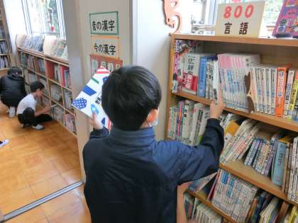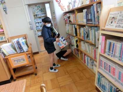 朝の活動の時間に図書室では、高学年が読書をしていました。本を借りると同時に5年生が返却された本をもとの場所へ戻す作業をしていました。みんなのためにありがとうごさいます。