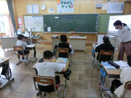 4年生の算数の時間は、2けた÷1けたの計算の学習をしていました。姿勢もよく丁寧に計算に取り組んでいました。間違えずに計算できたかな。