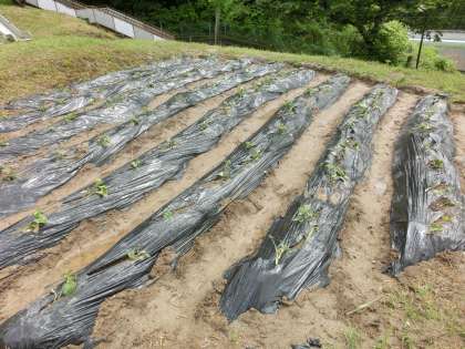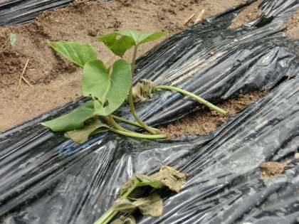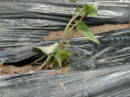 イモの苗を植えて3日目、朝方の雨のおかげか、元気に育ってきたような感じがしました。
