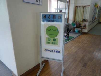 熱中症が心配な季節になりました。本校では、休み時間の前にWBGT(暑さ指数)を測定し、子どもたちが外遊びできるか確認できるようにしています。