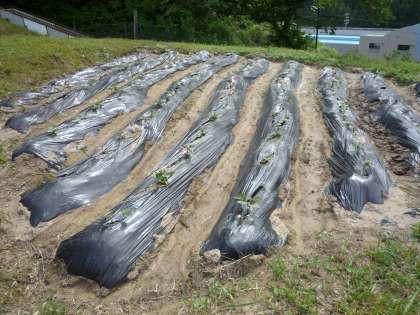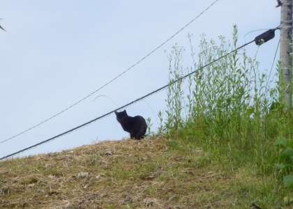イモ畑に行くと草むらで黒い影が動き目をやると○○でした。(写真右)つい最近近辺で大きなイノシシの目撃情報が寄せられています。お気を付けください。
