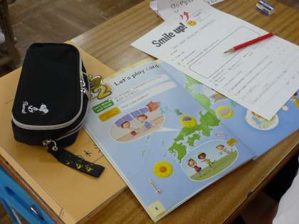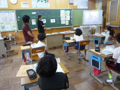 4年生の外国語活動では、英語を使って外国の遊びを紹介していました。