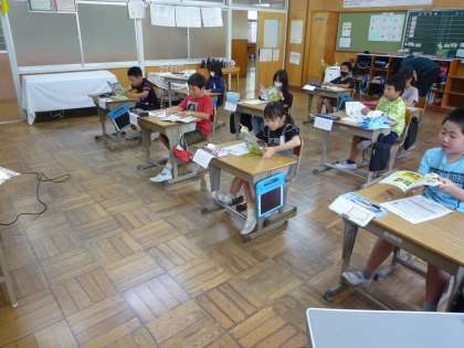 今日は、豊田市中央図書館から先生をお招きして出前講座を実施しました。「調べ学習の手順を知ろう」ということで、3年生は、図書資料から目的の情報を素早く調べる方法を学びました。さくいんけんさく、もくじけんさく仕方を学びました。また、情報泥棒にならないように、調べたことについては「参考文献」を表記することも学びました。