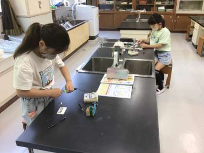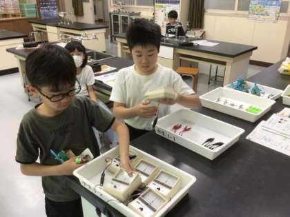 今日は、簡易検流計を使って、電流の流れる向きについて実験をしました。