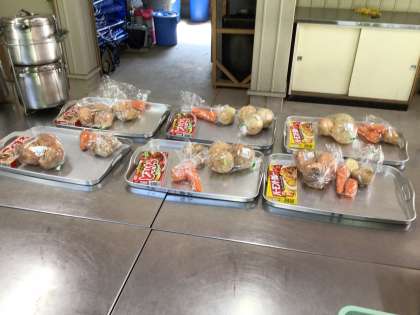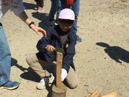 今日の夕食はカレーライスです。食材の準備が出来ました。まずは薪割りです。