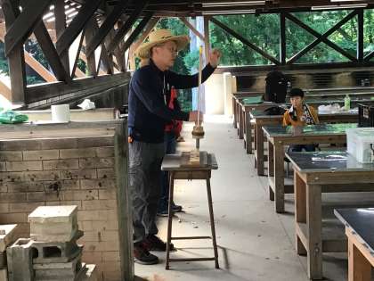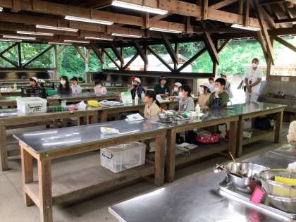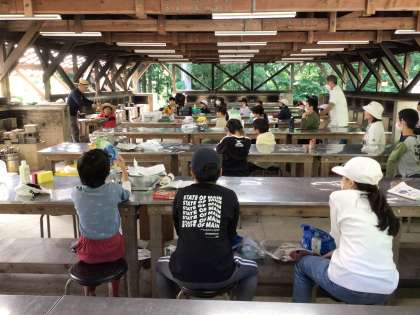 食材の準備が出来たら次は火起こしです。うまく点くかな。