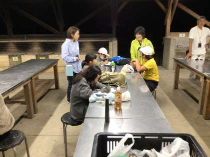 キャンプファイヤーを終えて今日1日を振り返ります。この後は楽しみのおやつタイムです。