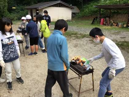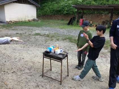 カートインドッグに火をつけました。みんな上手に焼けています。