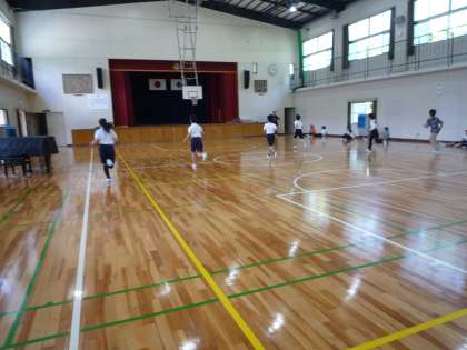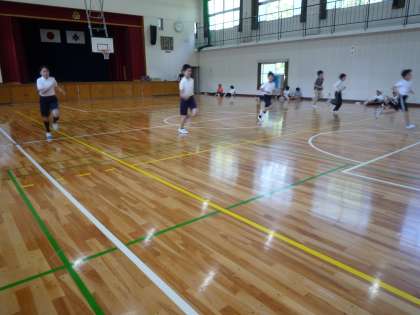 5・6年生の体育は、今日はプールは一休みをし、体力テストの続き、シャトルランを行いました。外は日差しが強いですが、体育館は心地よい風が吹き気持ちよかったです。いい記録がでたかな。
